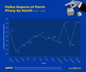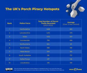 “Porch piracy is no longer just a problem during the festive season, as police forces are seeing consistent cases throughout the year and spikes in January in particular. Fuelled by post-Christmas sales, returns, delayed deliveries and dark evenings, there are plenty of opportunities for porch pirates to strike.